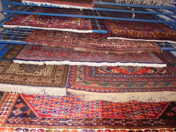 | Rugs drying flat in our custom built drying room | Handmade rug cleaned by Swift Rug Cleaners | Dull, dirty rug fresh and bright again thanks to Swift Rug Cleaners |